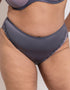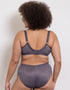 Adella's Athena Amore range is complete with the high leg brief in a slate grey simplex fabric, trimmed with mauve purple mesh. This knicker offers fuller coverage for comfort, with a high leg line that's flattering and easy to wear.