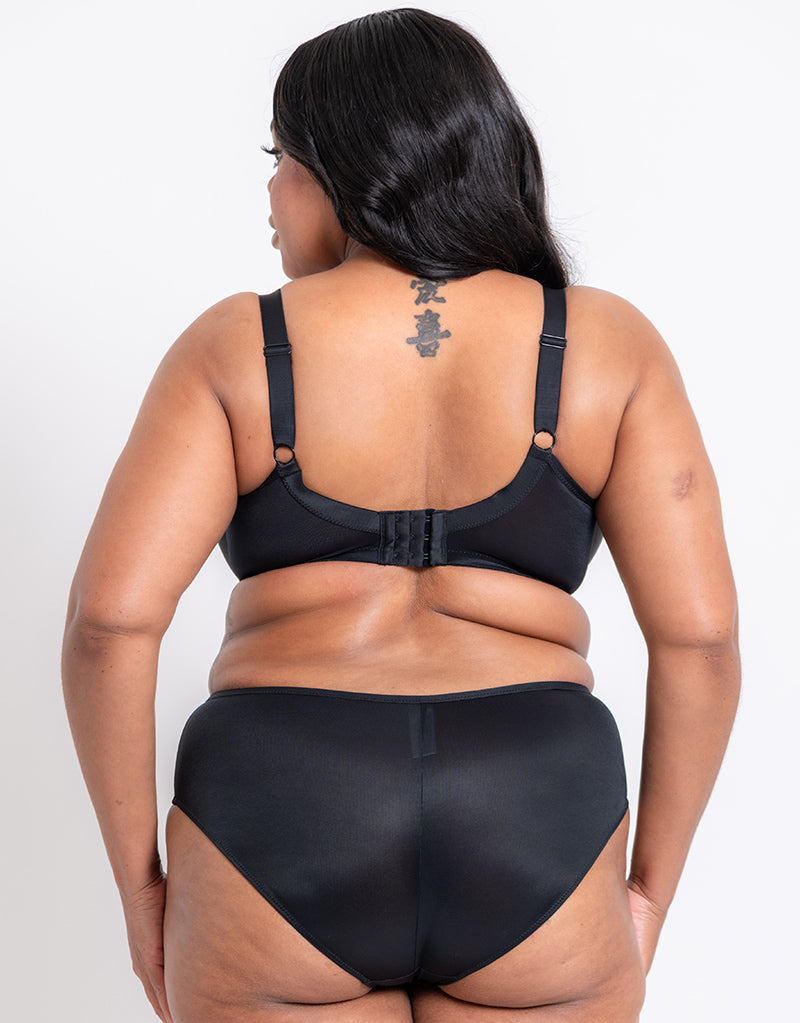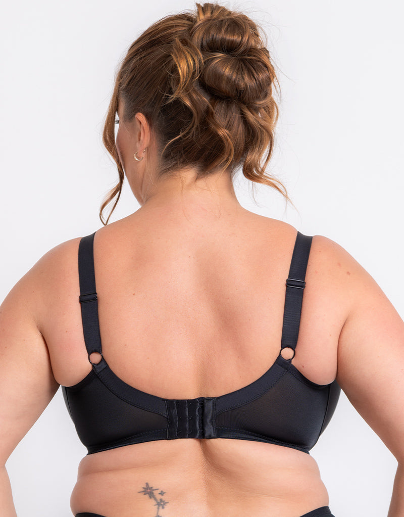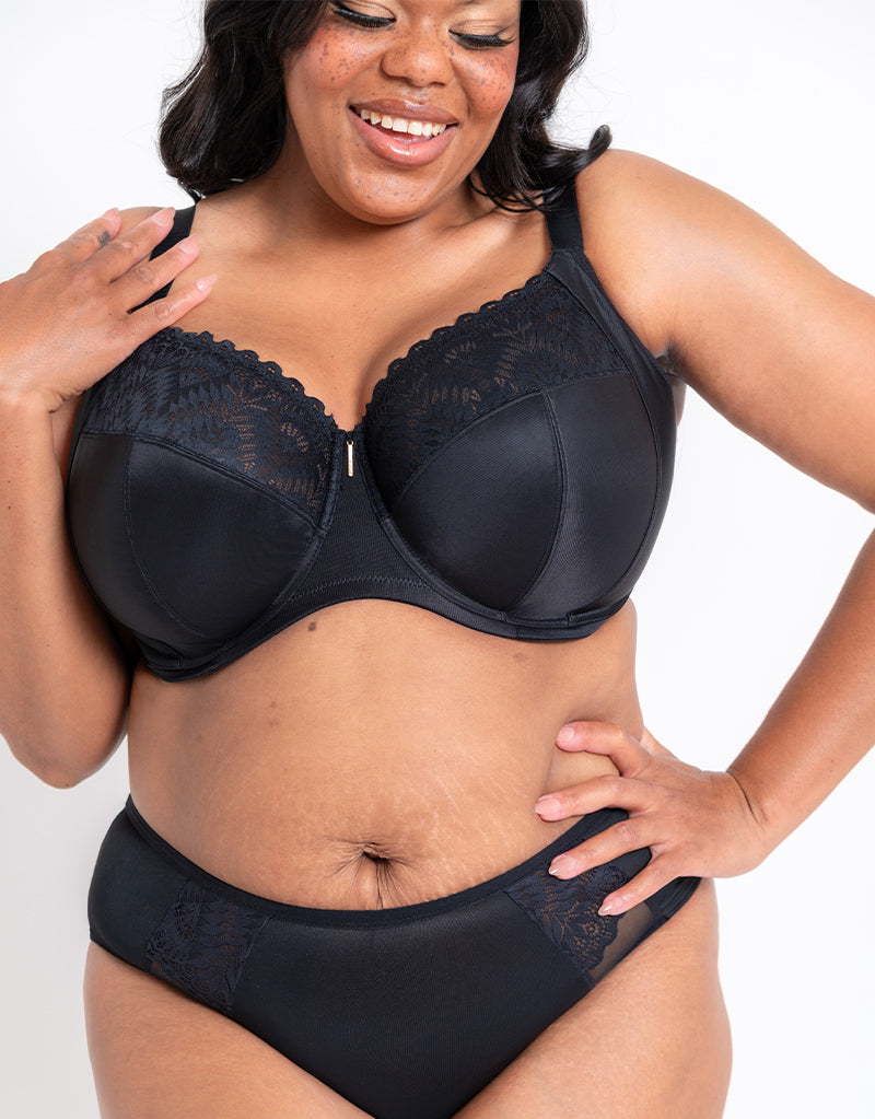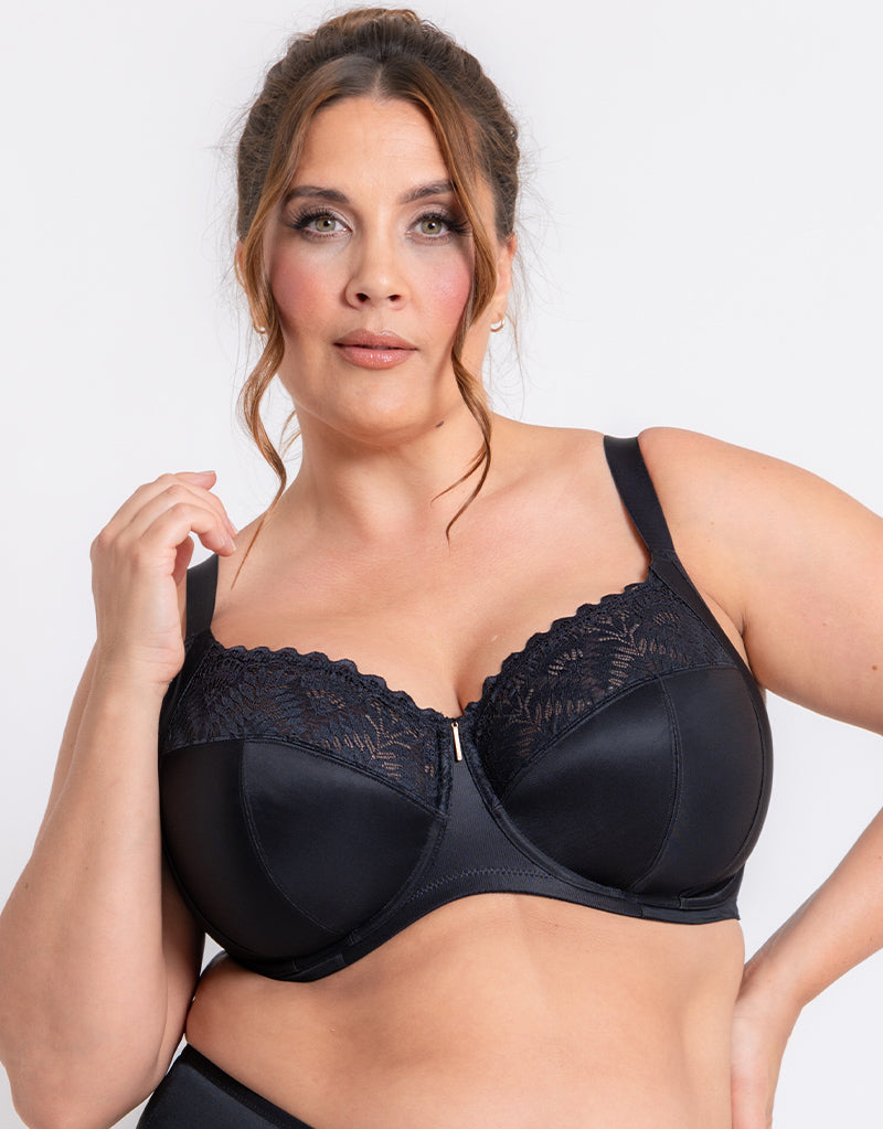 Introducing Athena, a brand new full cup bra from Adella lingerie. Designed especially with fuller figures in mind, this everyday style is elevated by the beautiful lace top cup detail and sleek gold charm at the centre front. Fuller cup coverage and a 4-part structure keeps your bust secure and supported with gentle projection and a rounded shape, with laminated bottom cups to maintain shape and uplift. Wide non-slip straps and deep powermesh wings provide anchorage for the bra, and keep you comfortable all day long.