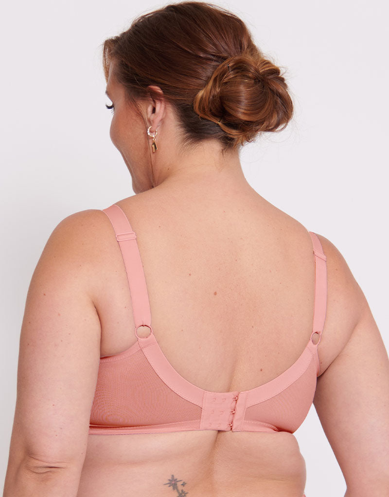 Our stunning Adella Athena full cup bra returns in a soft blush pink. This bestselling style is designed especially for fuller figure comfort, support and style in premium fabrics. Athena offers the perfect everyday foundation with a full cup shape and 4-part structure that uses side support panels to give a forward shape and streamlined silhouette.