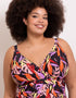 Feel supported and stylish in the new multi print colourway of Adella's fuller figure swimsuit, Calypso! This curve-friendly style is chic with twist detail plunge cups, lined with supportive mesh and feature concealed underwire for great uplift and shape. A lightweight control mesh lining in the front offers a subtle smoothing effect, while ruching detail gently defines your waist.