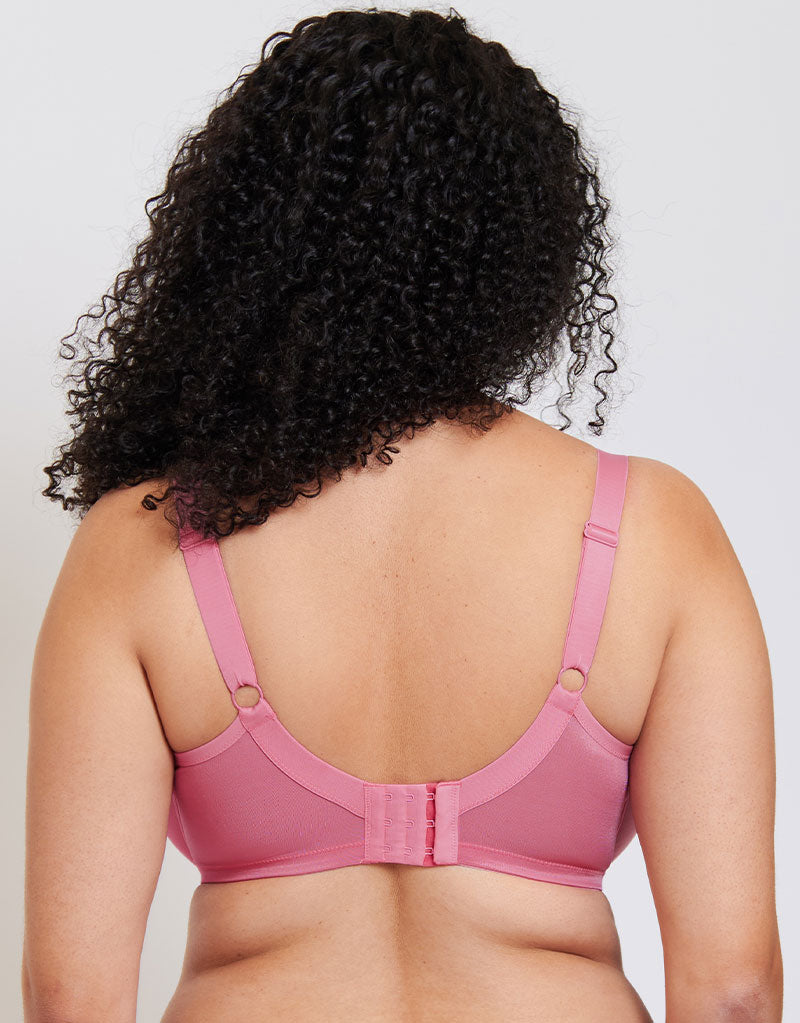 The perfect option for fuller figures - our gorgeous Adella Hera full plunge bra. This pretty rose pink colourway gives everyday sophistication, while the construction provides an exceptional fit and support. An elegant style with high quality fabrics, using laminated bottom cups for perfect uplift and a rounded shape.