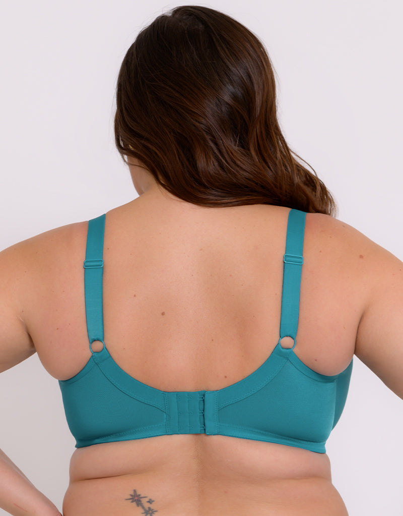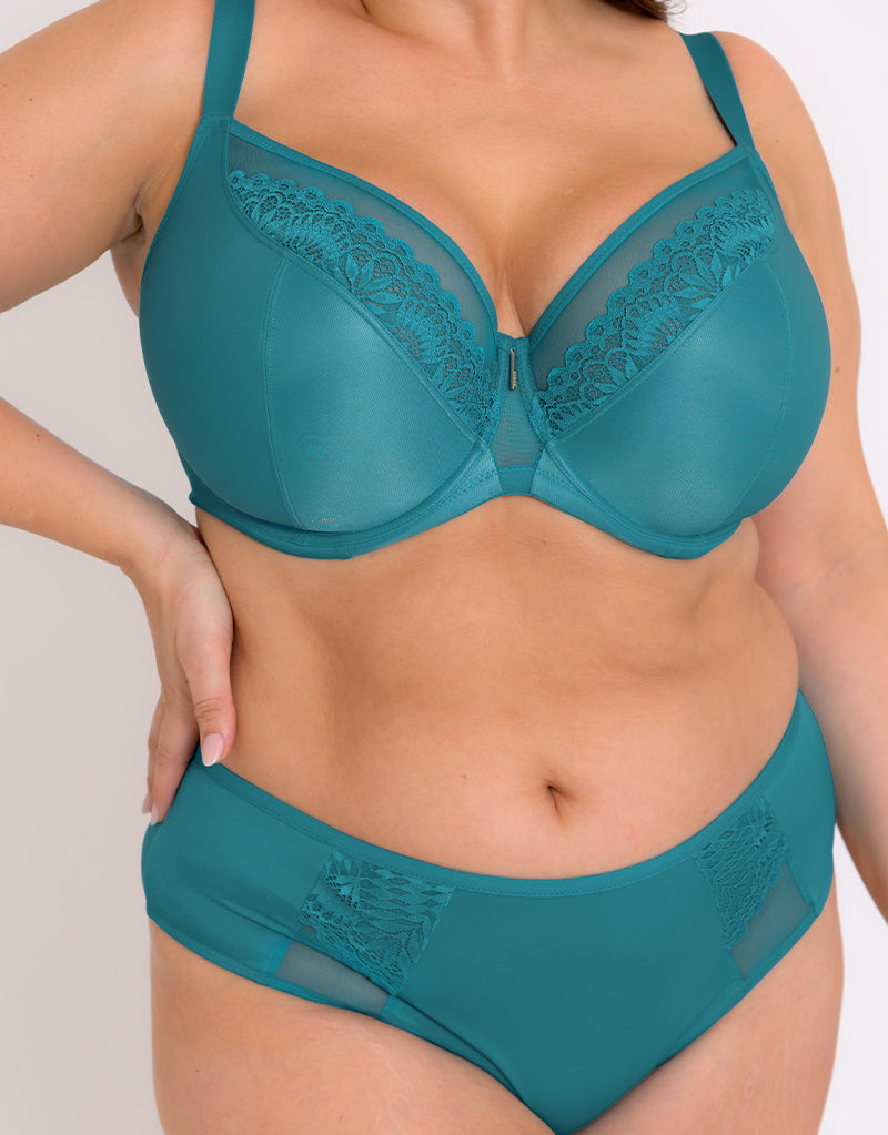 The Hera full plunge bra from Adella ticks all the boxes - comfort, style and support! This beautiful Tropical Blue style brings a pop of colour to your bra-drobe, and is non-padded with 3-part cups and a lower centre front. The bottom cups are laminated to give an uplifted, rounded shape, with a lightweight mesh top cup and lace detail to elevate the look. A slimline, gold charm to the centre fronts adds an elegant finish, while the wide shoulder straps and deep powermesh wings ensure a firm but comfortable, non-slip fit for all day wear.