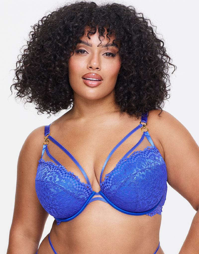 Lovers Lace Padded Plunge Bra Cobalt Blue