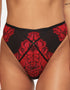 Choose the Ann Summers Nightfall high waist thong for an alluring look. Made from two-tone red floral lace and black mesh with statement cross-over strap detail at the front, the high rise waist offers added front coverage while the barely-there thong back keeps it sleek under clothes.