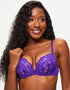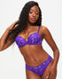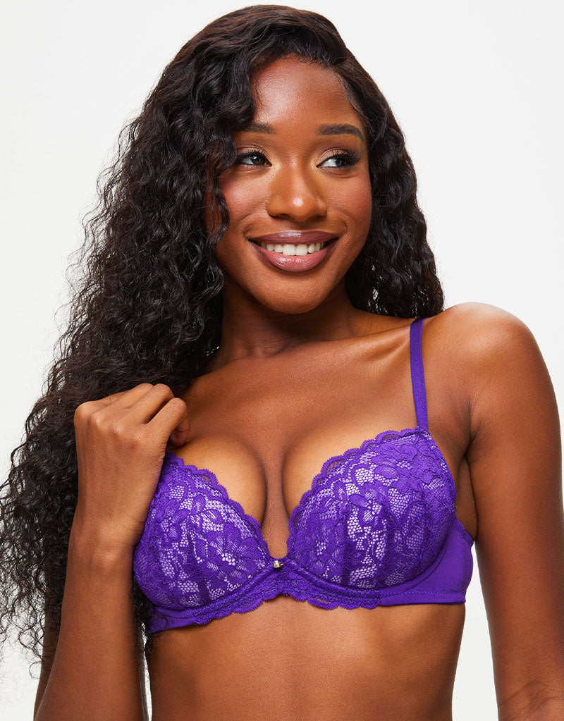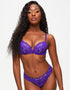 The Ann Summers Sexy Lace padded plunge bra is back in a deep jewel toned purple. Made from a minimum 30% recycled fibres and uses mesh that contains 50% recycled yarns! The lightly foam lined cups give an uplifting fit that boosts your cleavage without feeling bulky, and ensures a fantastic shape with good support for all day comfort.