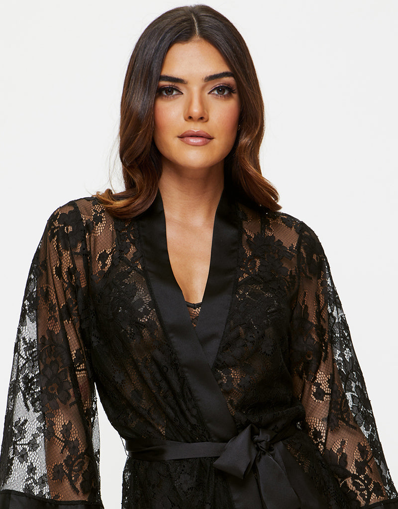 Level up your nightwear with The Dark Hours robe from Ann Summers. This floral lace robe is elegant and romantic, with wide satin trims for a luxurious feel and finish. Loose fit sleeves and a satin tie-belt offer a comfortable fit, perfect for layering over your favourite sexy lingerie... or nothing at all!