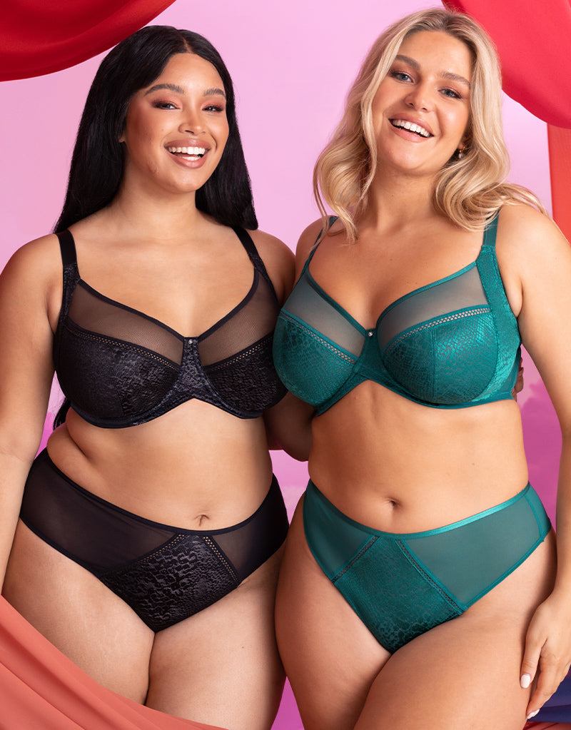 Curvy Kate's Amaze balcony side support bra returns in a stunning Verdigris green. This cleverly designed style brings all the best features of the brand's bestselling Victory bra and adds added comfort details to provide the ultimate K cup fit! Side panels give forward projection in a fuller 4-part balcony shape, with supportive non-stretch fabrics. Teamed up with features like a cross-over centre front to give a curved up shape that allows for upper tummy comfort by preventing the band from flipping and rolling, as well as centre pull straps that reduces slippage and ensures great shape. All styled in a stunning snakeskin print fabric with a subtle shimmer and rick-rack trims.