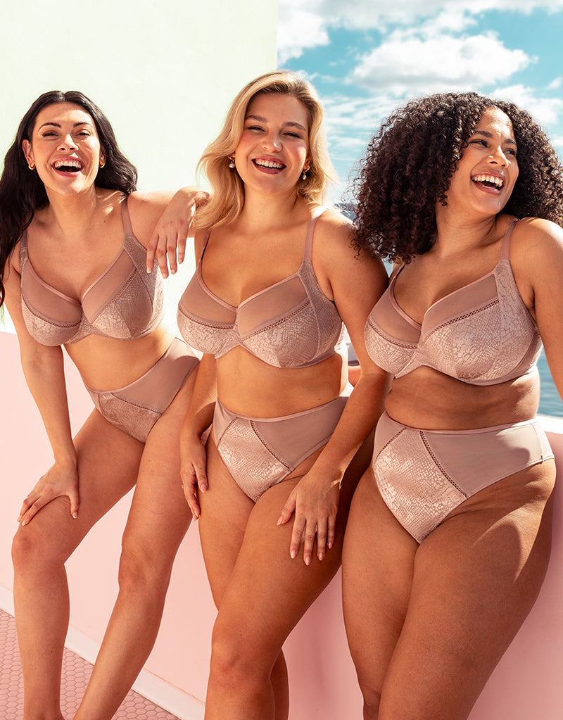 A cross-over centre front provides a curved up shape that reduces pressure on your stomach and prevents the band from flipping and rolling. Side support panels give forward shaping and projection for a sleek silhouette, while centre-pull straps reduce slippage off your shoulders.