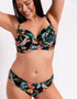 The Curvy Kate Cuba Libre classic bikini brief offers medium coverage with a lower waist, perfect for getting your tan on in any sunny destination. A bold tropical print on black can mix and match effortlessly with the rest of the range, or add a pop of colour when paired with a plain black swim top. Contains recycled fibres and Xtra Life Lycra to prolong the life of the garment.