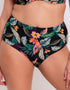 Say hello to sunshine with Curvy Kate's Cuba Libre high waist bikini brief in a bold tropical print on classic black - perfect for matching to the rest of the range, or mixing it up with a plain black swim top to bring a pop of colour. The high rise shape offers extra coverage in the front and back, and contains recycled nylon fibres along with Xtra Life Lycra to prolong the garment's lifespan.