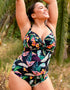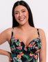 This chic one-piece swimsuit features underwired cups that have a foam lining to ensure they maintain their shape and support even when wet, and convertible straps that can be worn straight, crossed over, or tied as a halter to suit your style. The bold tropical print on black is perfect for any destination, with a flattering and comfortable cut that provides good bottom coverage.