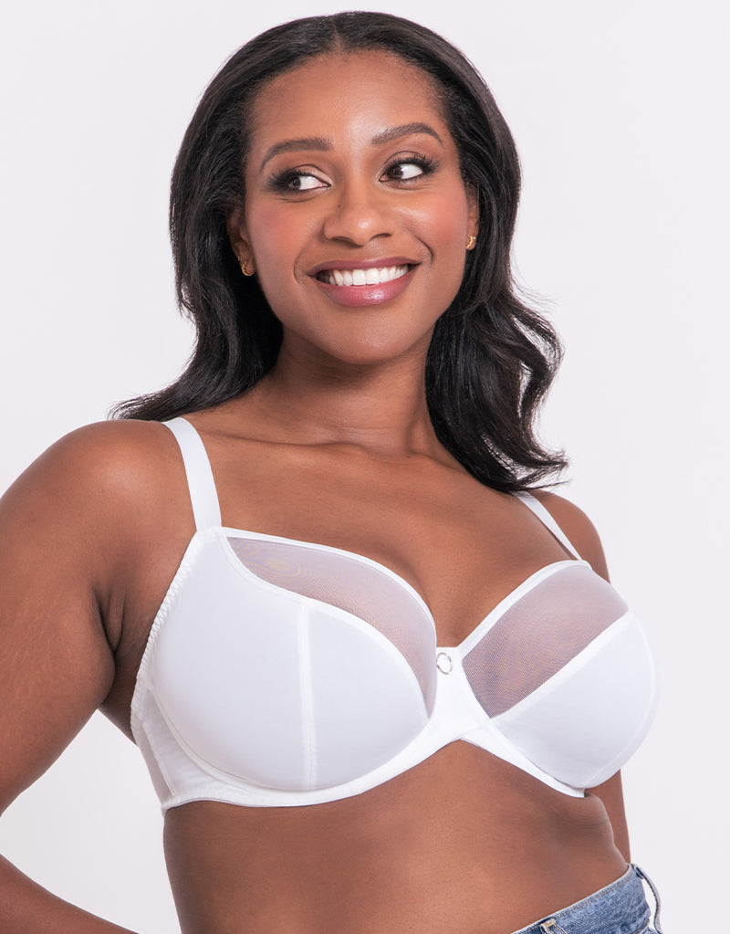 Curvy Kate's Daily Balcony bra is stunning in a crisp, bright white. Designed to give all-day comfort with a natural shape, this lower coverage balcony bra keeps things simple with its minimalist design and fuss-free fit. Laminated bottom cups meet a sheerer mesh top cup, with fully adjustable non-slip shoulder straps and cross-over centre front to combine comfort with functionality.
