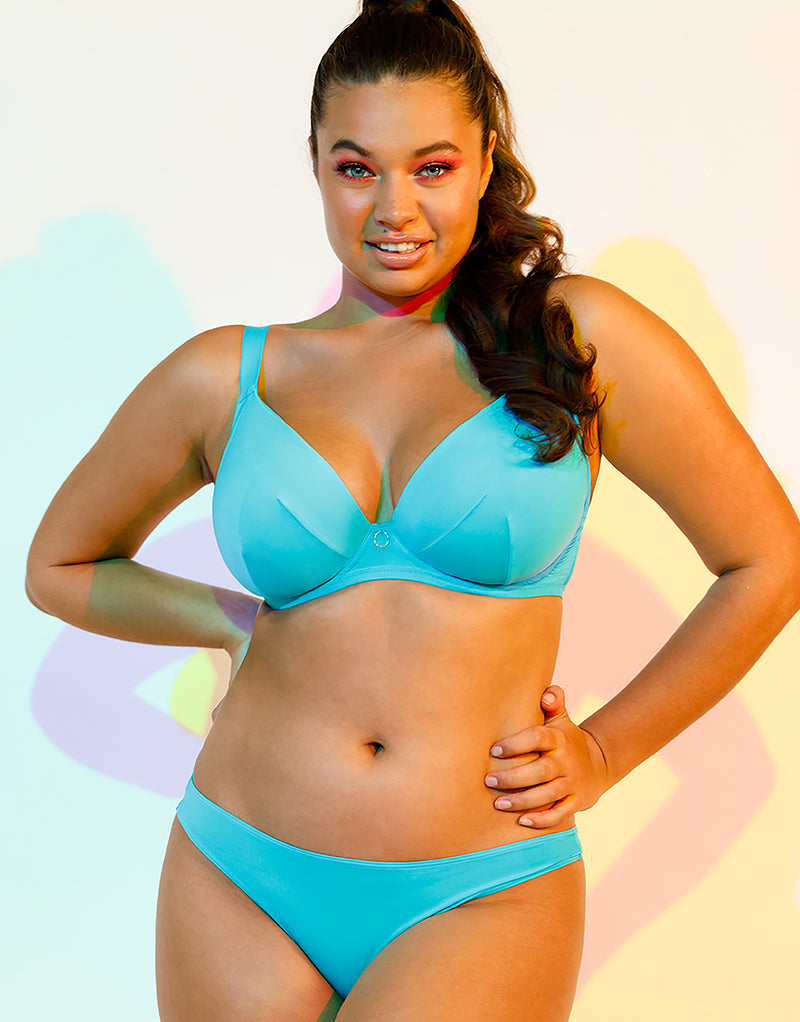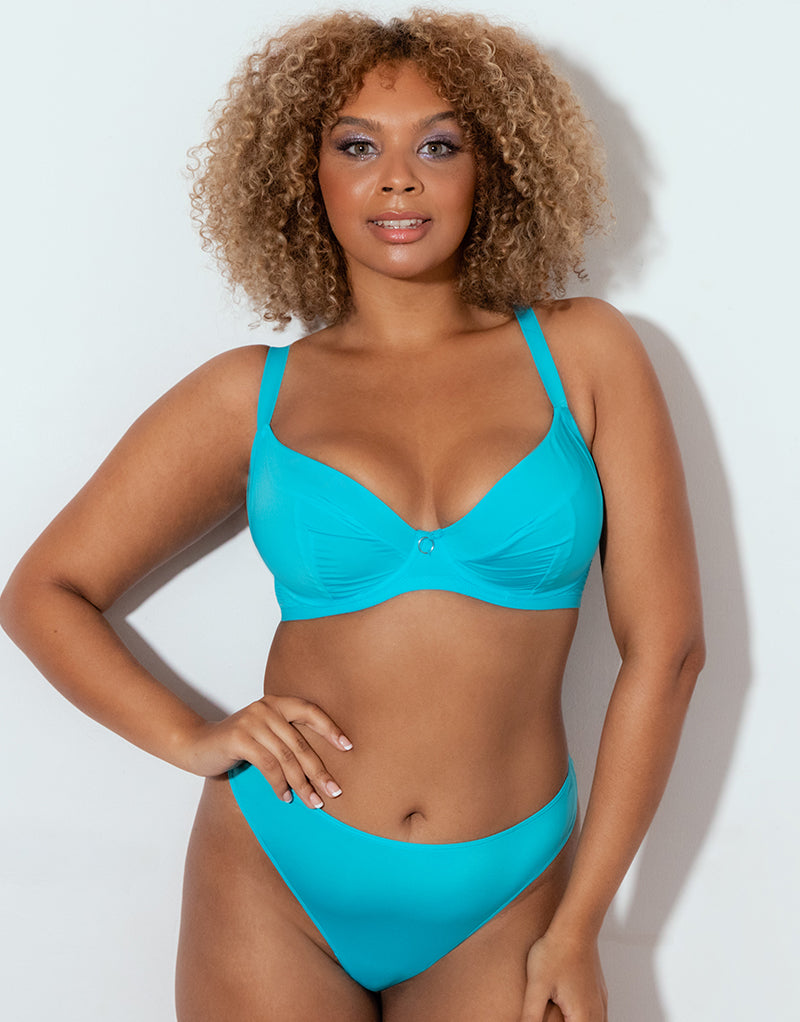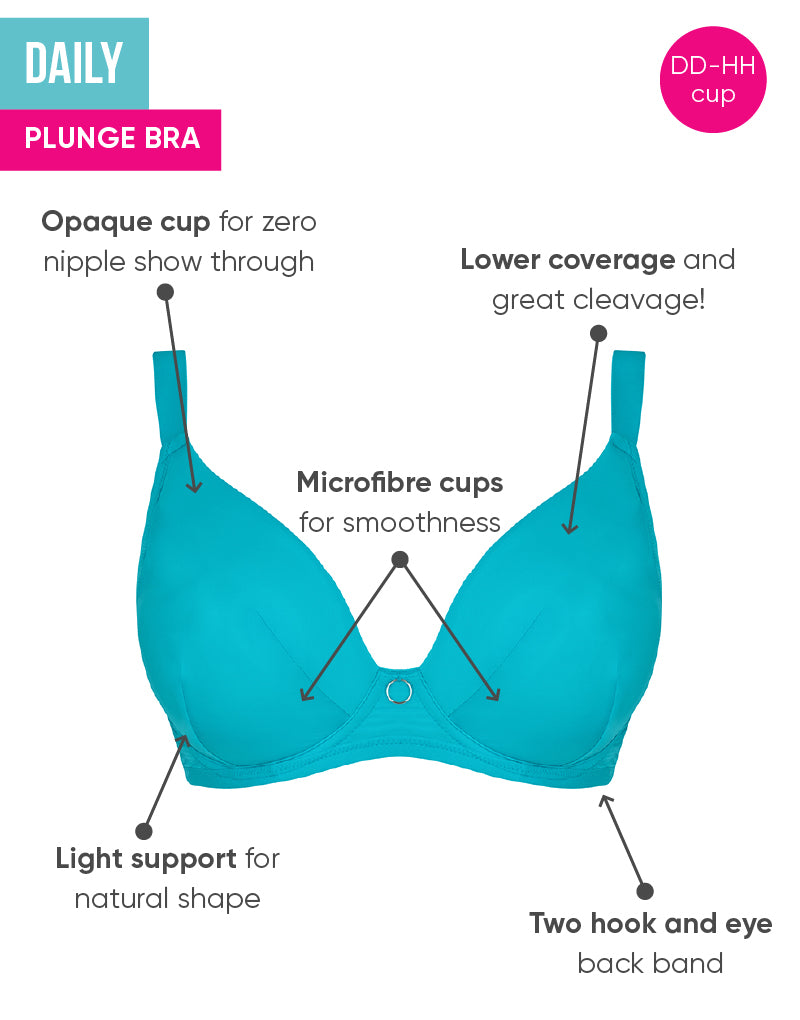 For everyday style with a vibrant twist, choose the Curvy Kate Daily plunge bra in turquoise! Non-padded, opaque cups based on the brand's bestselling Lifestyle plunge offers a more modest fit, with fantastic shape and support in an easy-to-wear 3-part cup.