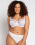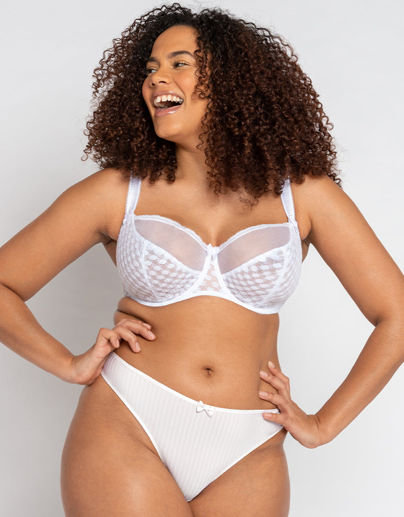 Get everyday chic in the Curvy Kate Dottie balconette bra. Available exclusively online in a crisp white hue, this supportive and stylish bra features lightweight mesh cups for an uplifting and comfortable fit with cute polka dot embroidery.