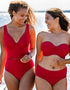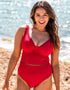 Bring on the Baywatch vibes with Curvy Kate's First Class swimsuit in red! This super sleek one-piece swimsuit is made with 40% recycled materials and features underwired, plunging cups to give incredible shape and support for fuller busts. Wide shoulder straps are adjustable and convertible so you can wear it classic over the shoulder, cross-back, or tied as a halterneck. Stylish criss-cross stretch trim inserts at the neckedge and waist add a sweet finishing touch.