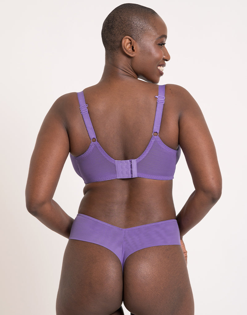 The Flare deep thong from Curvy Kate is the perfect choice if you prefer a higher waist on your knickers with low bottom coverage - the best of both worlds! This gorgeous knicker option is made from soft mesh with subtle sparkles running through flame-inspired embroidery, in a beautiful amethyst purple hue.