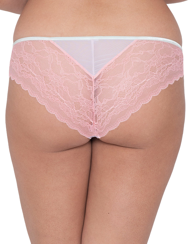 Flaunt your curves with the Curvy Kate Flutterby brazilian brief. This gorgeous lace-backed brief is elegant and pretty, with total comfort and a great fit. Mixing lilac, pale pink and mint green together to create a dreamy pastel palette that suits all skin tones.