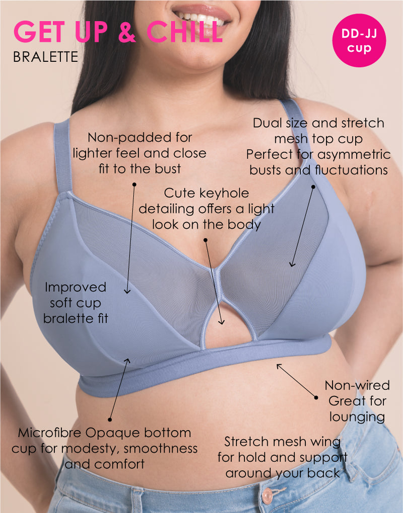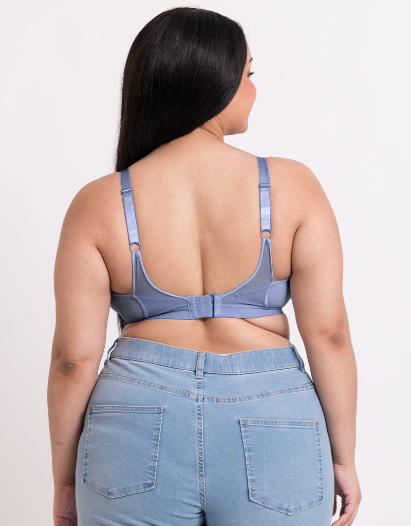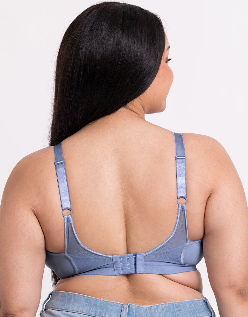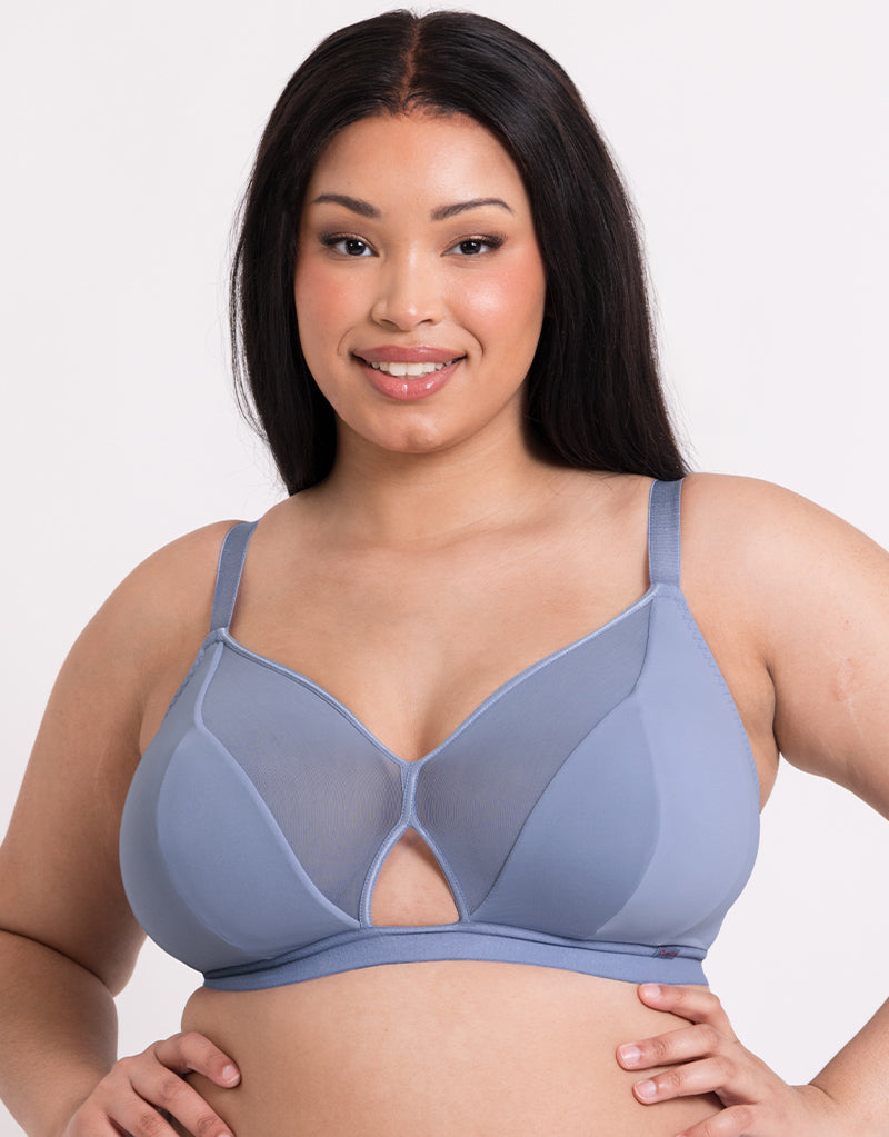 Curvy Kate's Get Up And Chill bralette returns in a chic slate blue hue. Soft microfibre cups are lined with mesh to give gentle shaping and support while feeling like a hug, with non-wired, non-padded cups. Designed to fit like a second skin, with fully adjustable straps and a hook and eye fastening.