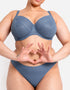 Welcome Curvy Kate's Happy Boobs balcony bra, now available in its third colourway of a sassy denim blue! This bra is based on the brand's bestselling balcony shape up to a J cup, giving every day comfort and style with its 3-part shape, and soft lightweight fabrics in a petite diamond mesh. An extra column of hook and eye fastenings offers added longevity, allowing extra flexibility to adapt to your body fluctuations so you can extend the bra's lifespan (remember: a new bra should always start on the loosest set of hooks, so you can tighten it over time as the fabrics stretch out!).