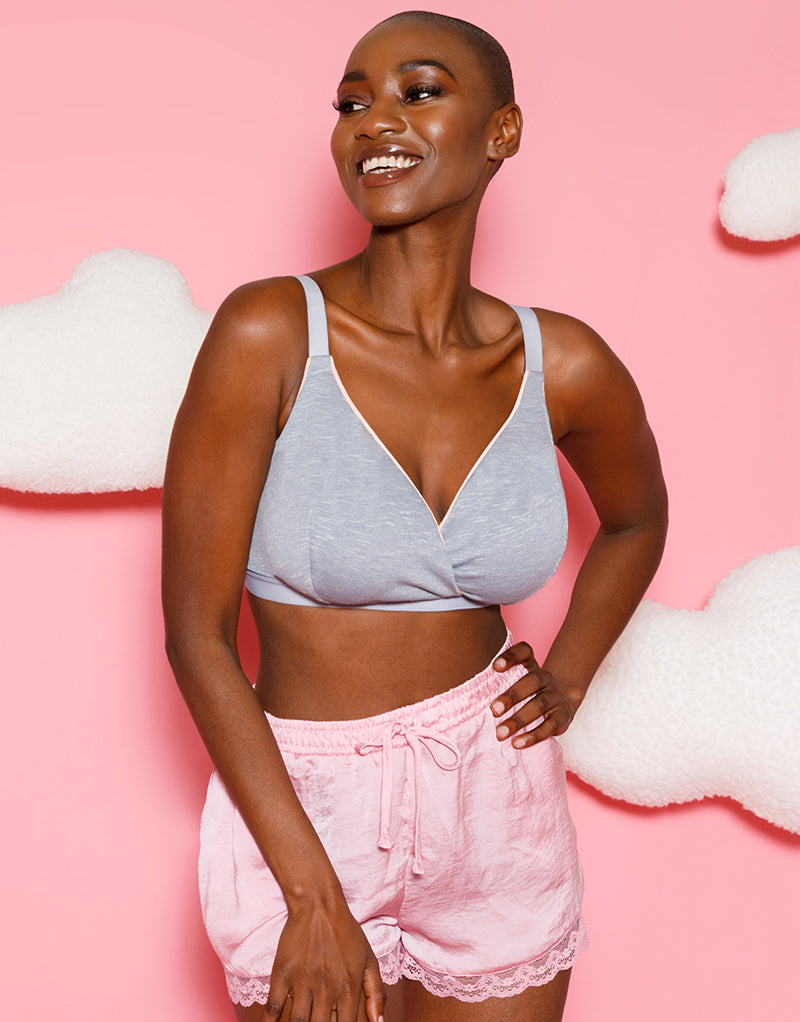 Say hello to overnight comfort with the Curvy Kate In My Dreams sleep bra. This cleverly designed bralette features soft, breathable fabric in a chic grey marl, with a peach mesh lining for soft breast support and added breathability. A soft marl 'breast separator' sits in your cleavage to reduce chaffing and rubbing, while mesh panels at the back feel like a hug - ensuring maximum cosiness and a non-slip fit.