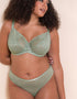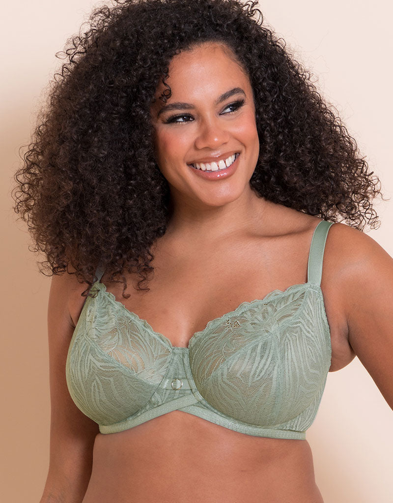 Curvy Kate's Lace Daze balcony bra is back in a pretty sage green hue, hitting the latest trends right on target. The 3-part balcony cups with stretch lace to the top ensure a flexible, comfortable fit that moves with your bust, and accommodates monthly size and fullness fluctuations and asymmetrical breasts. Upfront Technology gives your bust a forward, uplifted shape, along with a curved cross-over centre front for upper tummy comfort.