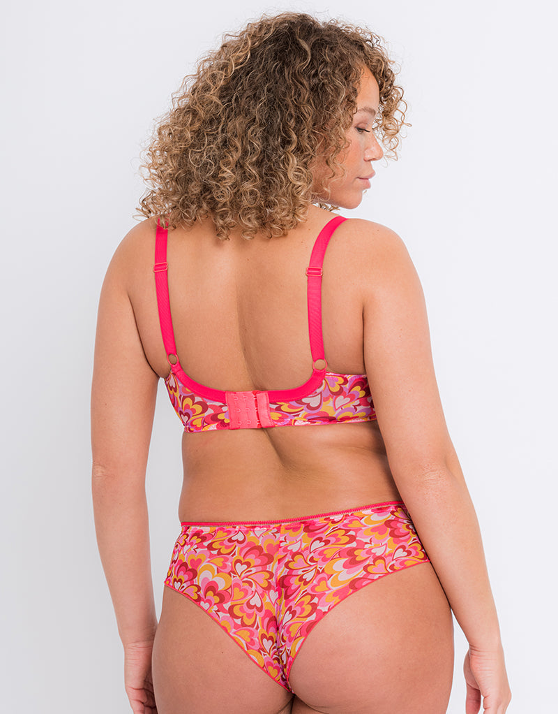 Curvy Kate's Lifestyle print bra is bringing the retro vibes with this fun and colourful heart print pattern! The single layer of sheer mesh is non-stretch but dynamic, giving a firm and supportive fit through to a J cup, and offers a lightweight feel on the skin that's breathable too. Cut in a 3-part cup with lower centre gore to give great shape and projection without extra push-up.