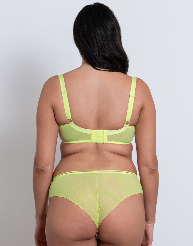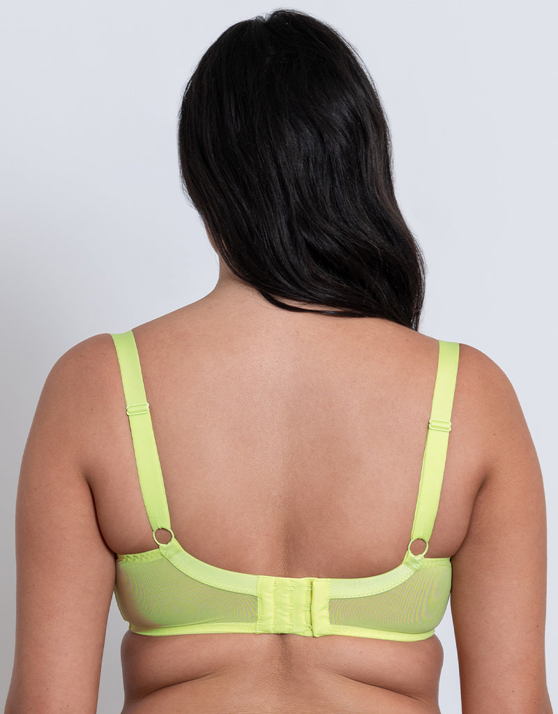 Curvy Kate's Lifestyle plunge bra is back in a zingy zest colourway - a stunning neon green-yellow hue that looks amazing on any skin tone. The 3-part plunge cups give a projected shape, made from a single layer of dynamic non-stretch mesh to give a barely-there feel against the skin for breathability and comfort.