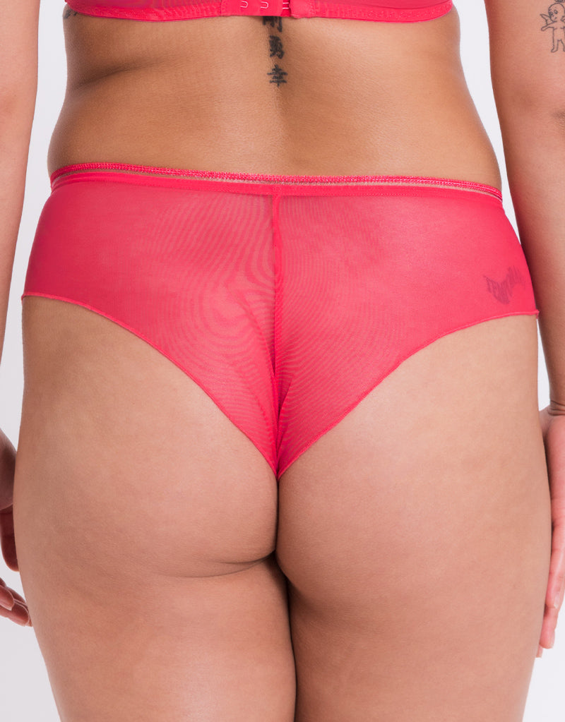 Make it a match everyday with the Curvy Kate Lifestyle short in bright pink. This soft, sheer mesh knicker is cut in a cheeky short shape for less coverage in the rear, but offering a modest fit in the front with two layers of mesh.