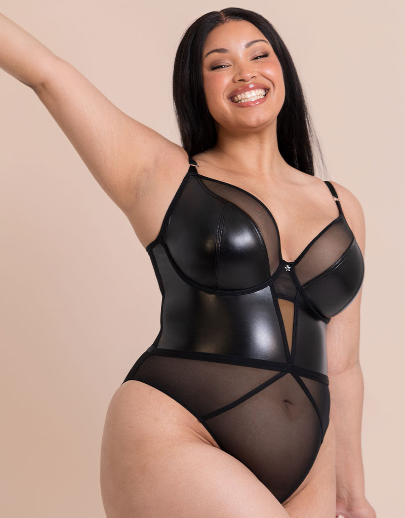 The Curvy Kate Lucky Star plunge body means business, made from super soft mesh and faux-leather for a sexy, show stopping style. With a perfect fit and support for fuller busts thanks to the cup sized top, the panelled body will contour and hug your curves in all the right ways to really flaunt your stunning shape. Best worn with your fave skinny jeans for a killer underwear as outerwear look!