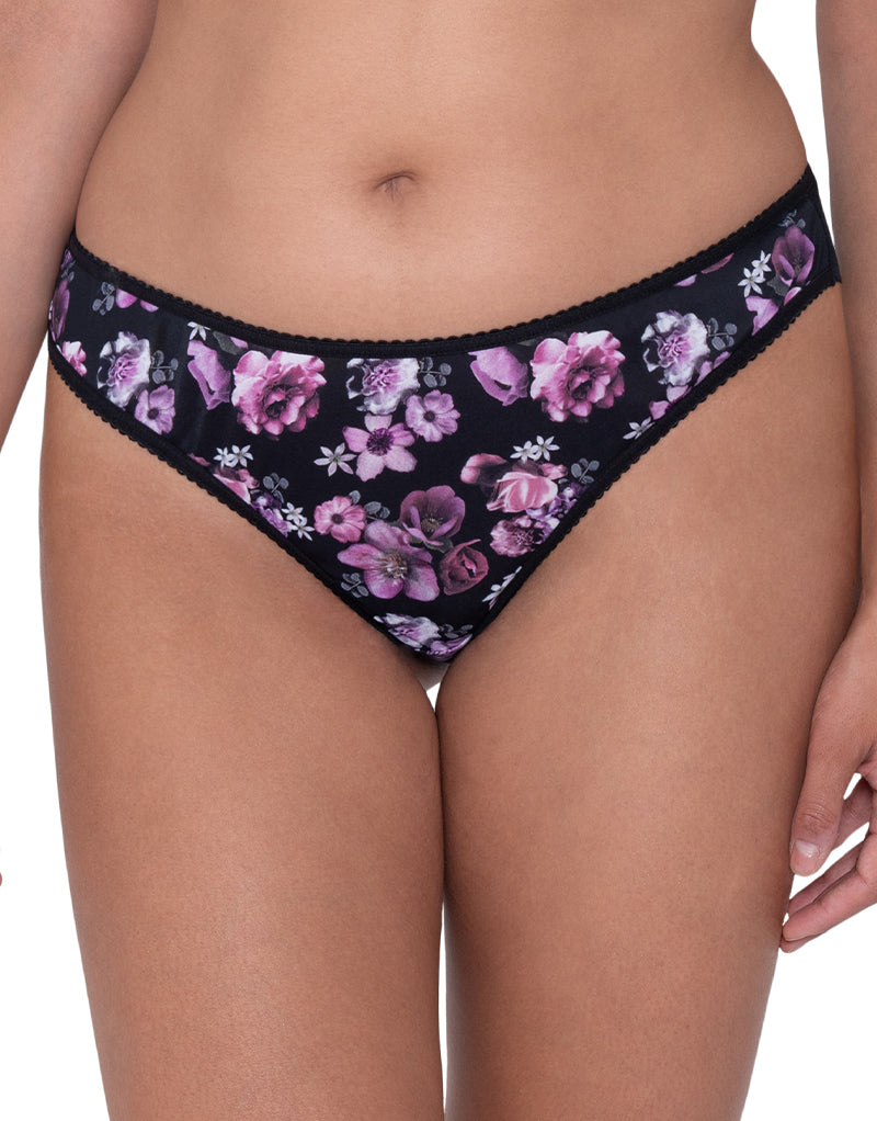 Curvy Kate's Moody Bloom brazilian brief offers comfort and style in a dark floral print. The low rise, mid coverage brazilian brief with folded rear mesh leg edges ensures a smooth and comfortable all-day fit.