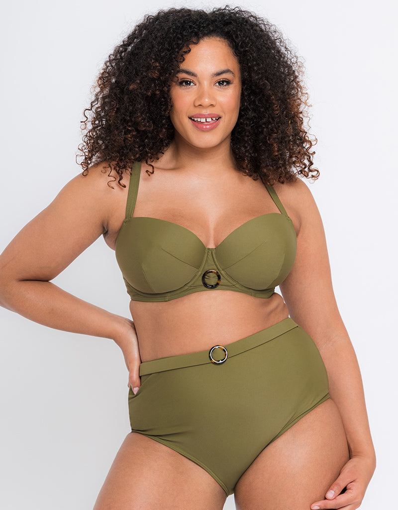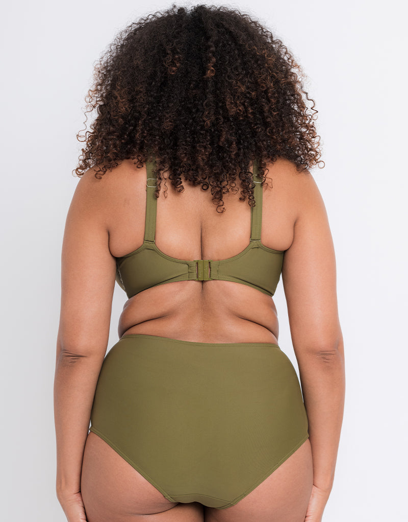 Retro Sun Padded Balcony Bikini Multiway Top Olive Green