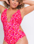 Let's hear it for the 70s inspired Retro Wave swimsuit from Curvy Kate! This mono-kini style one-piece swimsuit is stunning in a clash of pink, orange and red swirls, and is made using 36% overall recycled fibre content along with Xtra Life Lycra to give it even more longevity. Ultra-low plunge cups are triple layered to ensure maximum support without the need for wires or padding, while the shoulder straps are adjustable in the back and can be worn straight, cross-back or as a halter to suit your style.