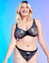 The Stand Out thong from Curvy Kate is perfect for adding some sass to your knicker drawer in this shimmery Black Sparkle colourway! Soft black elastics and mesh are cut in a T-back thong shape to give minimal bottom coverage, with oversized floral embroidery in iridescent thread.