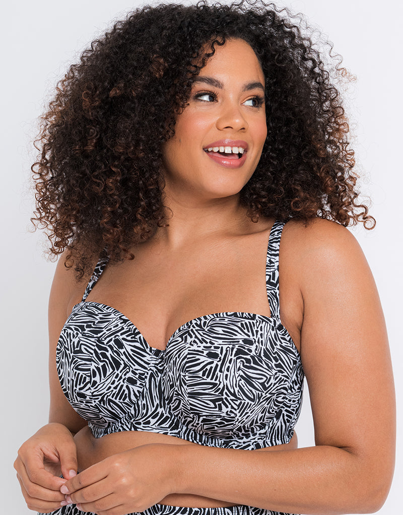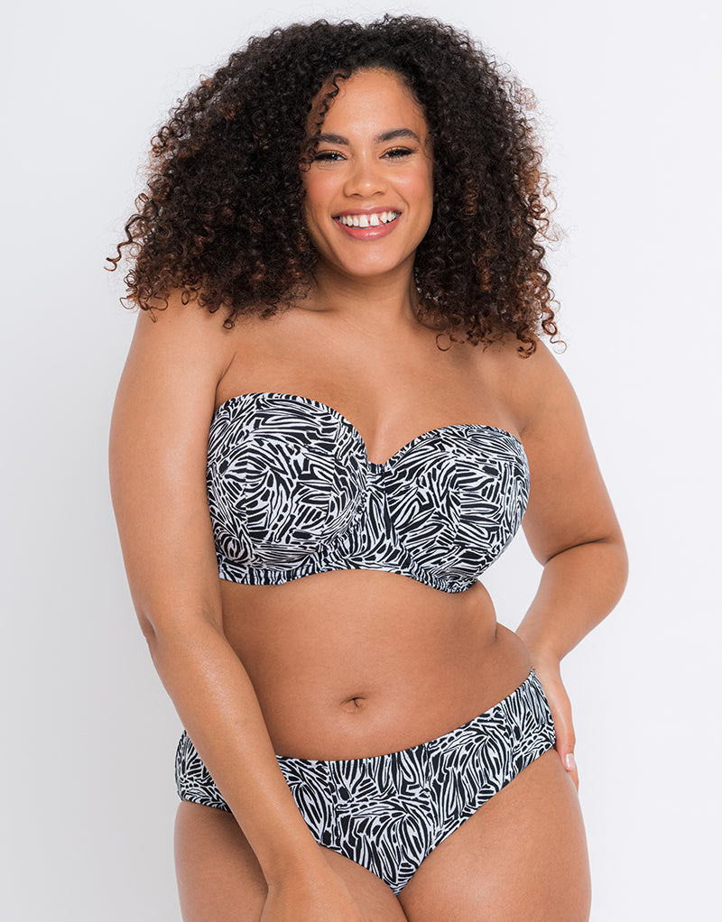 Sundown Bandeau Strapless Multiway Bikini Top Black Print