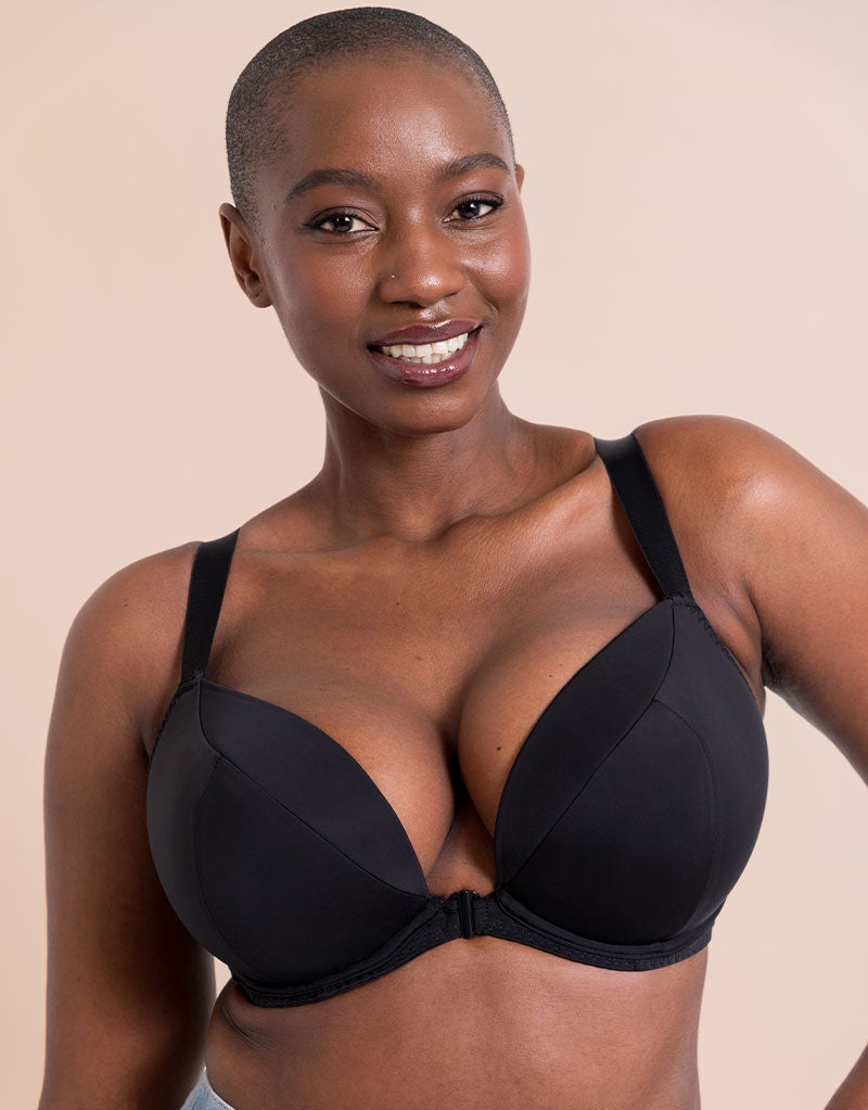 Get down low with Curvy Kate's SuperPlunge Kiss! Part of the brand's Girls Night range and ready to take you from day to night, this ultra-low foam lined plunge bra is made to show off your cleavage under those deep necklines, complete with front-fastening clasp for easier on-and-off. Wide shoulder straps and a plain mesh back band keep it comfortable to wear, while the 3-part cups offer a fantastic shape to your bust.