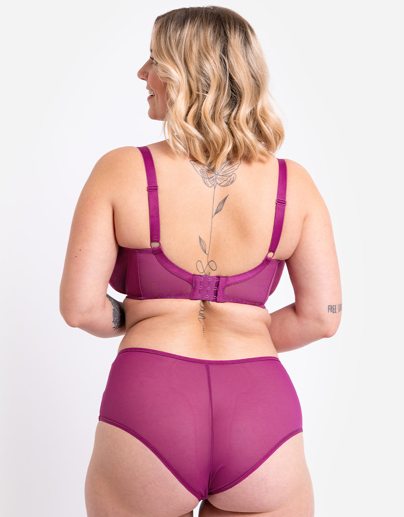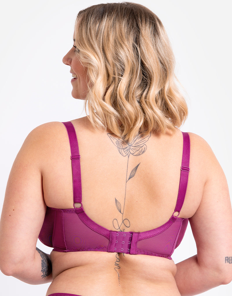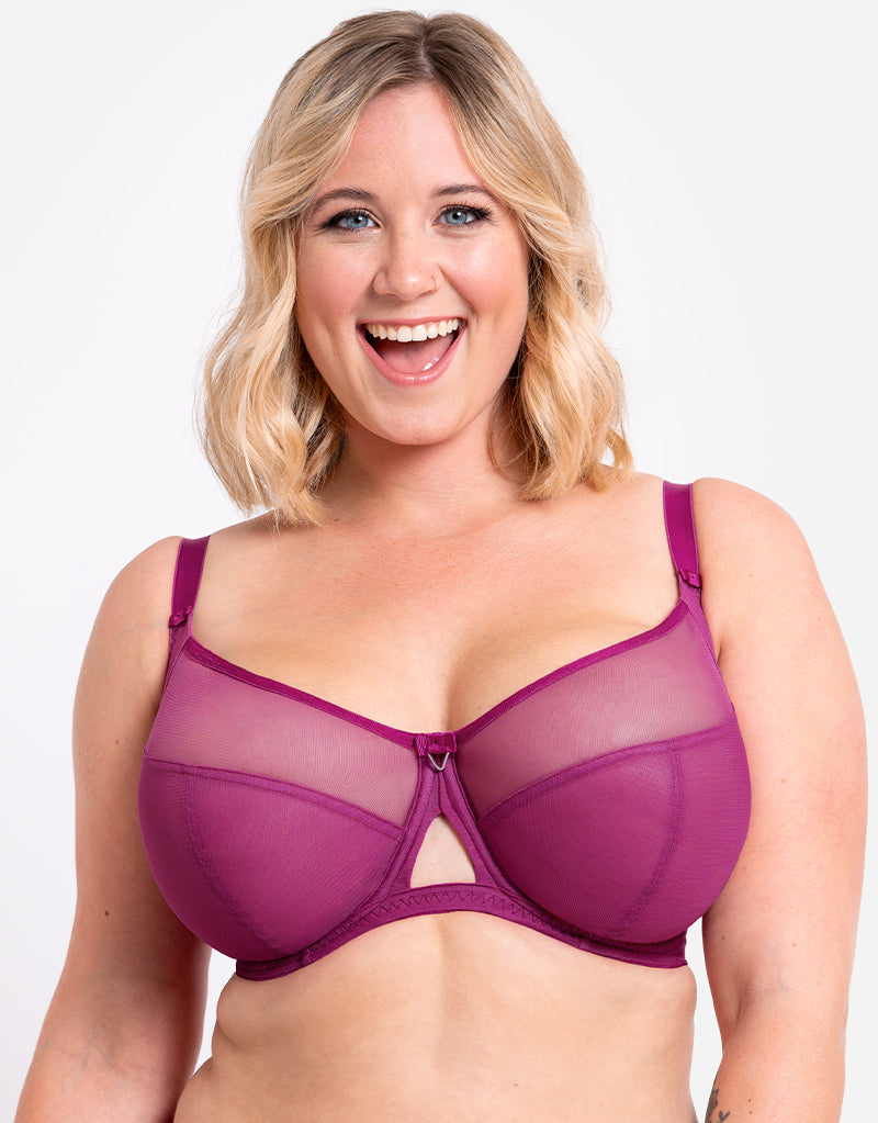 For everyday style look no further - Curvy Kate's bestselling Victory bra returns in a pretty orchid purple! This iconic design has 4-part cups with side panels to provide great shape and projection, made from non-stretch mesh that offers uplift and support up to a J cup. A no-fuss, no-frills design sits neatly under clothes and has a clean, modern aesthetic for ease of wear. Complete with sleek V-charm and keyhole cut out to the centre front.