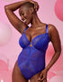 Introducing the Curvy Kate Wild One bodysuit! This ultraviolet blue hue pops against any skin tone, and offer a range of styling opportunities for those underwear-as-outerwear vibes. This underwired bodysuit combines comfort and style, with stretch lace top cups that give flexibility in fit and soft simplex fabrics to support and shape. A mesh body with considered style lines and panelling takes it to the next level, while fitting and supporting in the cups just like your favourite bra.