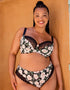 Wild One is back! This Curvy Kate balcony style returns in a beautiful floral print on a black base, featuring a geometric stretch lace top cup detail which offers a flexible fit that moves with your curves, accommodating for breast fluctuations and asymmetry. The simplex bottom cups are opaque for modesty and everyday wear, ensuring a great fit with fantastic support and shape, and giving an up-front look for the perfect foundation to your outfit.