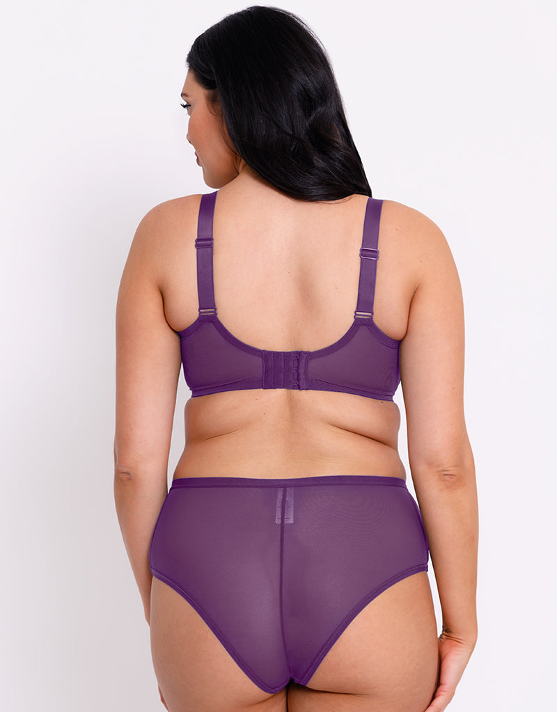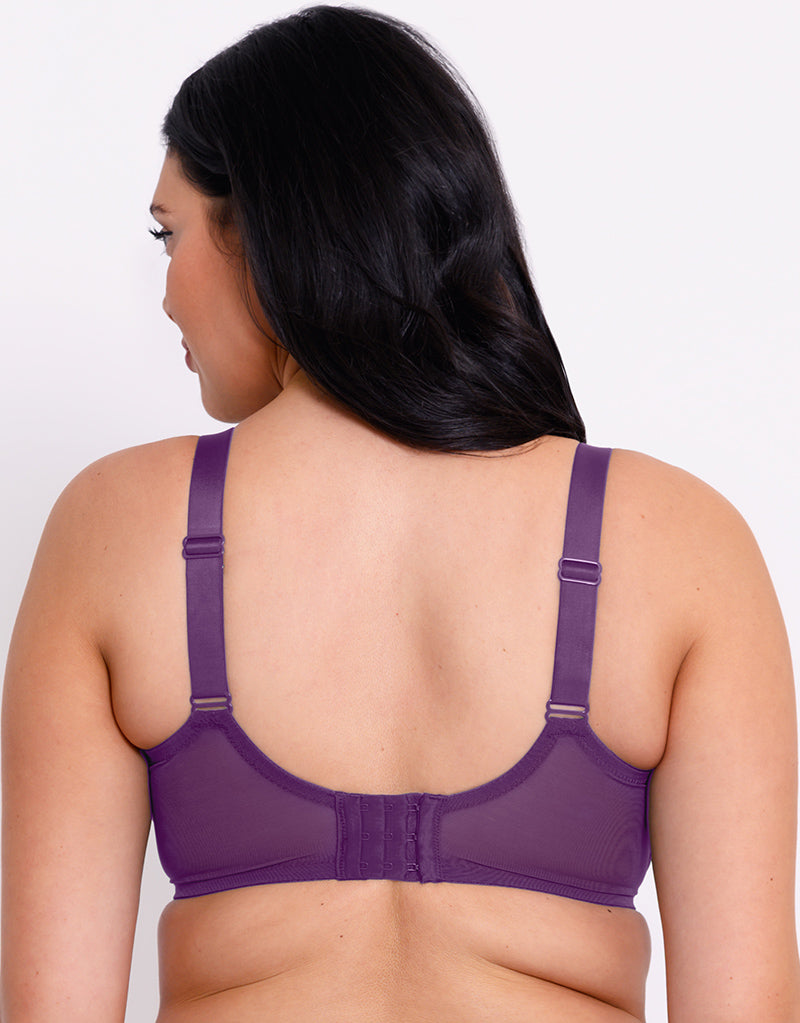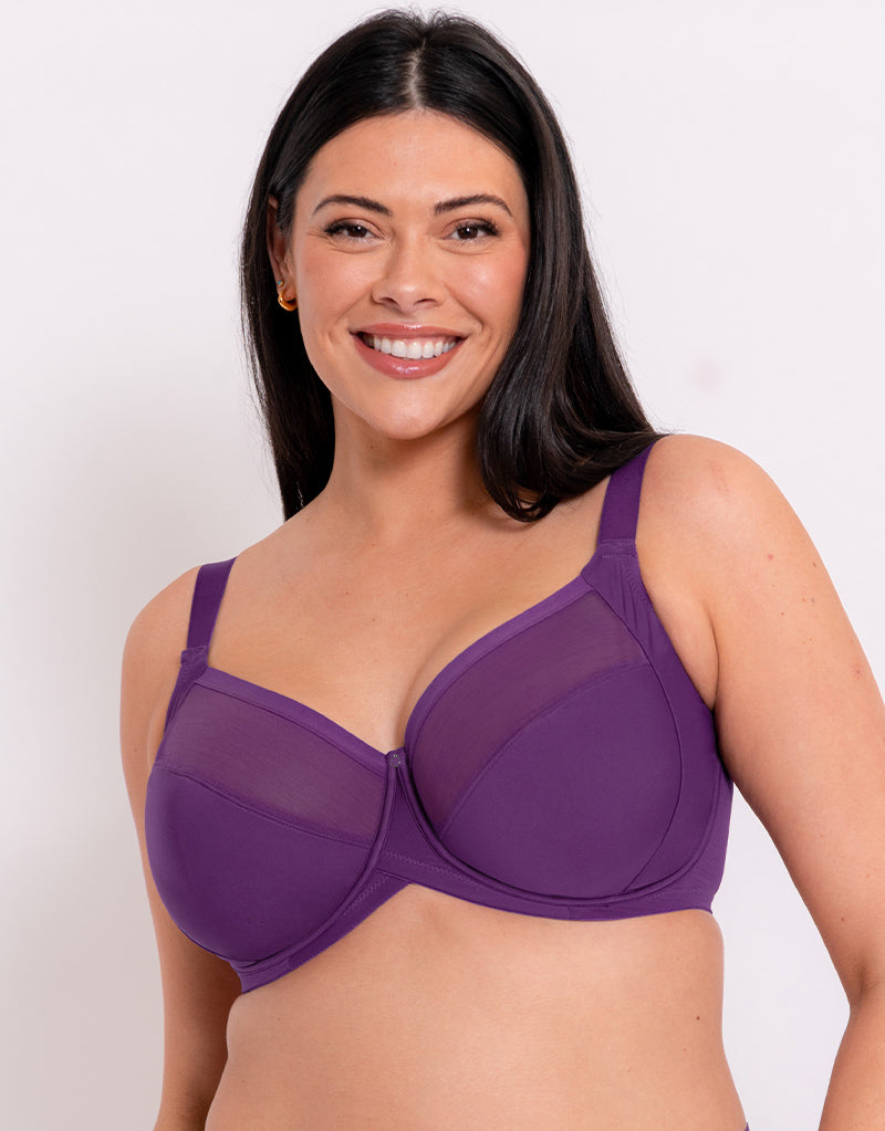 Get the perfect fit with Curvy Kate's WonderFully full cup bra in a luxe purple hue. This four-part cup bra uses side support panels to give amazing shape, combined with a stretch mesh top cup for flexibility and comfort. A cross-over centre front ensures no digging into your stomach - making it especially perfect for those with petite frames!