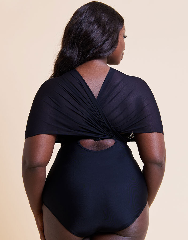 Will you wrap, twist, tie or knot it? Curvy Kate's Wrapsody swimsuit is here! Styled in sleek black with a gravity-defying strapless bra built-in, the lightweight mesh panels can be worn anyway your imagination can think of. Create a whole host of different styles to have you covered from pool to beach to bar all holiday long. The ultimate must-have swimwear for your next getaway!