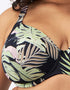 Elomi's Tropical Retreat swimwear range is gorgeous in black featuring a tropical print of muted green and pink palm leaves. This plunge bikini top offers generous coverage in the cup with a low neckline to give great shape and support, with concealed elastic on the neck edge for a perfect fit. Supportive power net lining adds extra lift and security, with Xtra Life Lycra to help prolong the lifespan of the garment.