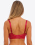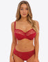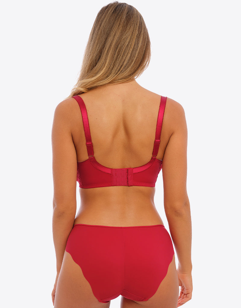 The Ana side support bra from Fantasie is based on their bestselling side support frame, ensuring the same reliable fit and great shape that the Fantasie brand is known for. In a tempting red hue, this 4-part cup with side panels boasts a trailing geometric embroidery for a modern yet classic style. Opaque bottom cups are non-stretch to give increased support and added modesty.