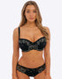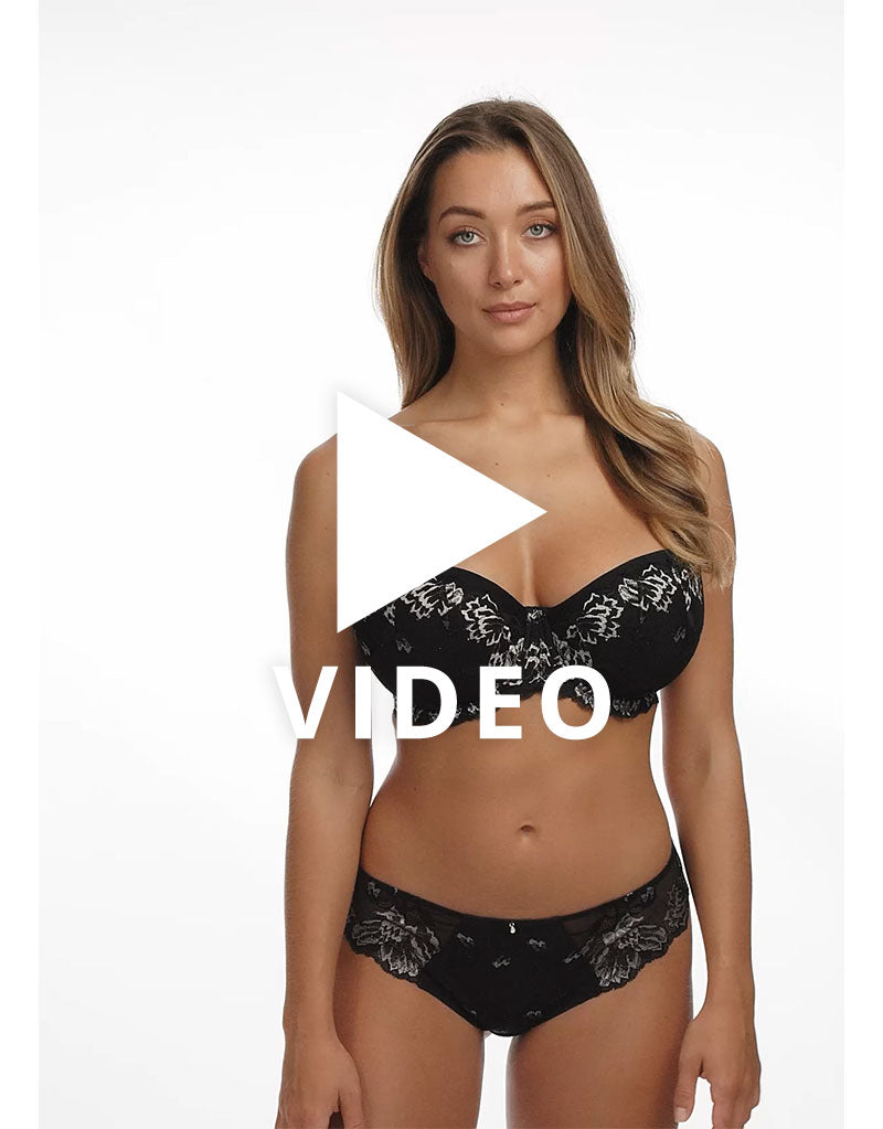 Give your bust a boost with the stunning Aubree padded half cup bra from Fantasie. Styled in a Night Sky Black colourway, this gorgeous design showcases two-tone lace detailing with silvery shimmer for a luxe effect.