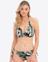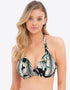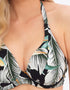 Classic holiday style is yours with the Bamboo Grove halter bikini top by Fantasie. This chic black and palm print bikini top has a low plunge neckline and mesh lined, underwired cups to give amazing shape and support whatever your holiday activity, with wide halter ties and a clasp back fastening.