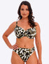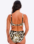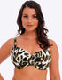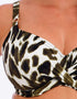Fantasie's Cabo Verde full cup bikini top brings poolside sophistication in this striking animal print with cactus green hues. The brand's signature full cup frame ensures perfect fuller bust fit, support and comfort with concealed side slings to give great shape and projection. Complete with a flattering twist front detail and gold ring hardware that won't heat up in the sun.