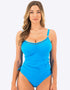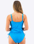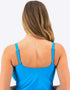 Make your tan POP with the Blue Diamond colour of the Fantasie East Hampton tankini top. This simple yet stylish swim top has concealed underwire cups to give support and uplift for D+ busts, while retaining a sleek and modern appearance with rick-rack ladder trim along the neckline. Adjustable drawstring tie sides allow you to gather the length to your preference, with adjustable shoulder straps too.