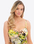We love Fantasie's Kabini Oasis swimwear range in this multicoloured print, and the twist front tankini is no exception. Concealed built-in support with underwired and foam lined cups offers perfect support for D+ busts so you can holiday in comfort and style, without worrying about a wardrobe malfunction. Adjustable drawstring sides allow you to control the height and coverage to suit you, all styled in a blend of animal print and palm leaves for truly tropical vibes.