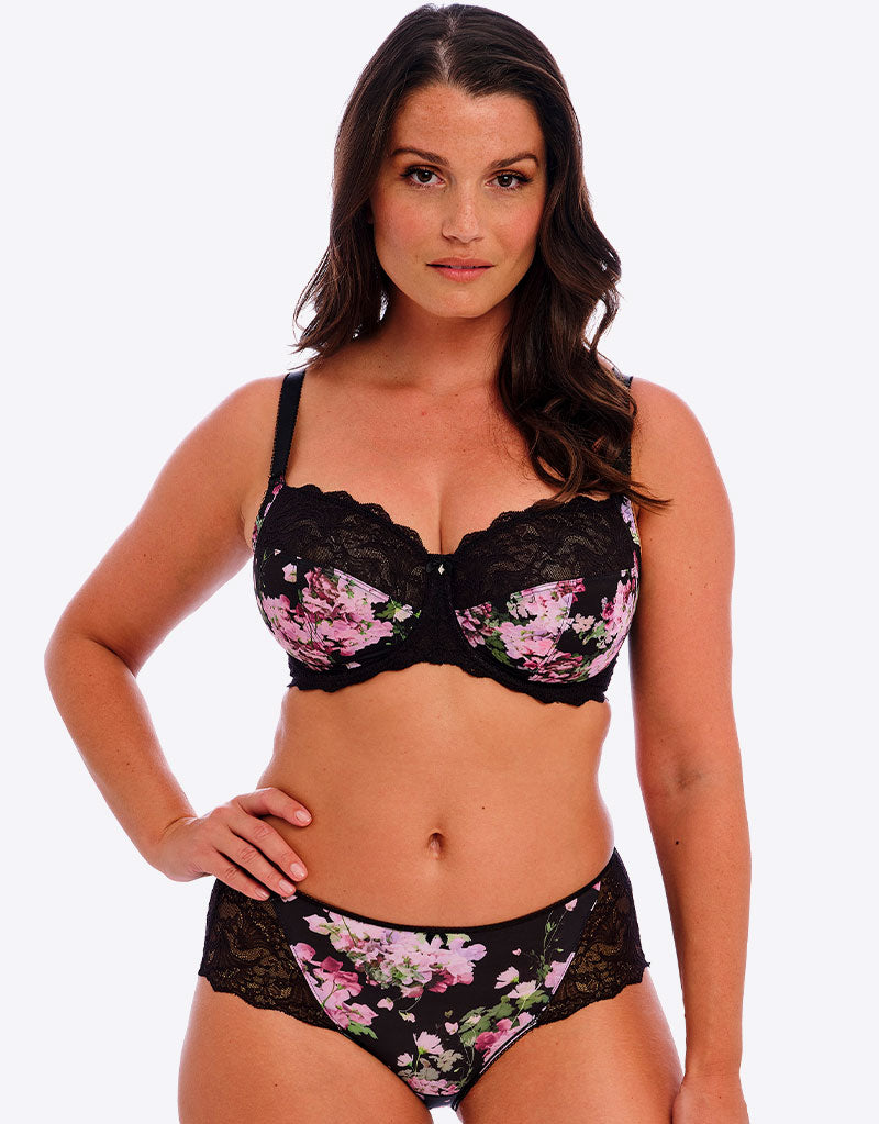 The Fantasie Lucia short is just divine in black with sweet pea floral print. A low leg line and mid rise waist makes this style a perfect choice for everyday wear, with stretch lace to the back and hips for a comfortable fit.
