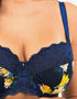Fantasie's Lucia side support is stunning in a navy blue with yellow floral print. The brand's well-loved and bestselling side support cup shape offers good everyday coverage with side panels that give your bust a fantastic forward shape, with uplift and support for fuller busts. Styled in an opaque, non-stretch fabric with lace top cups for a delicate and feminine appearance.