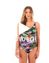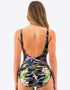 Step into easy holiday style with the Fantasie Maldives swimsuit in tropical black print. This V-neck shape offers a comfortable and flattering fit, with concealed underwire that shapes and supports D+ cup sizes while looking sleek and effortless. Adjustable ties at the hips allow you to control the leg line and coverage, while a scooped back offers ease of fit. Fully lined and with built-up shoulder straps for a premium feel.